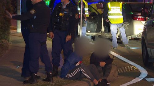 Two teenagers were arrested after the chase which ended in the sydney suburb of hassall grove. 9news two others aged 17 and 14 were found nearby after fleeing the scene.