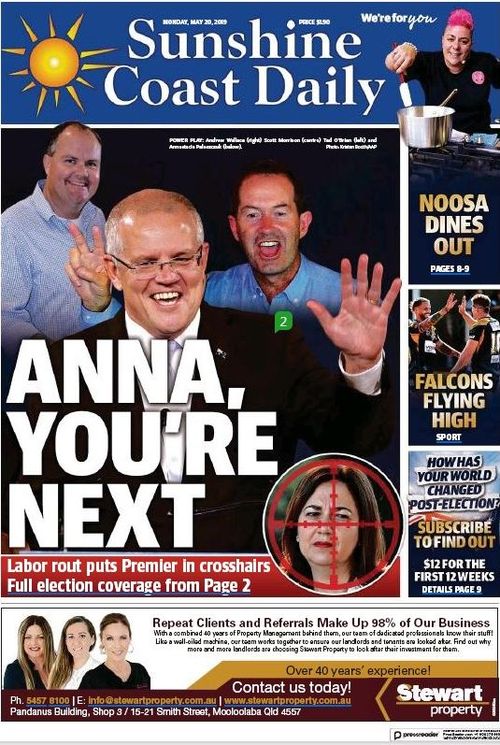 Federal Election 2019 Queensland Government Complains Over Sunshine Coast Daily Front Page