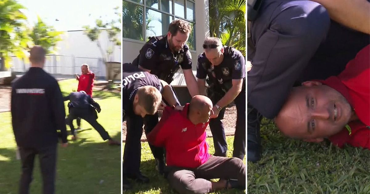 Queensland News Police Boss Tackles Man During Press Conference